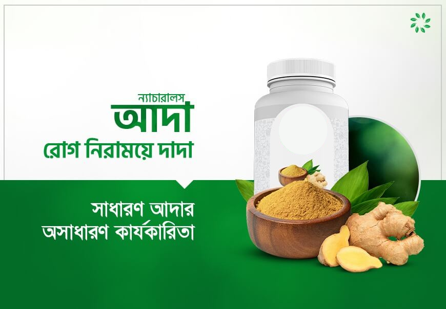 আদার উপকারিতা অসীম। এটি ছোট-বড় সকল বয়সের মানুষজন কোন প্রকার ক্ষতি ছাড়াই খেতে পারে। নিয়মিত সেবনে আদা মানুষকে স্বাস্থ্যকর জীবন যাপনে সহায়তা করে। এটি জ্বর, সর্দি-কাশি থেকে শুরু করে পরিপাক তন্ত্র সুরক্ষিত রাখে, পেশীর কর্মক্ষমতা বৃদ্ধি করে, চুলের সৌন্দর্য বৃদ্ধি করে, শরীরের অভ্যন্তরীন অন্ত্রের সুরক্ষা নিশ্চিত করে, ব্যথানাশক হিসেবে কাজ করে ইত্যাদি নানা উপকারের পাশাপাশি শরীরে রোগ প্রতিরোধ ক্ষমতা বৃদ্ধি করে। তাই নিয়মিত আদা সেবনের মাধ্যমে অসুস্থতা প্রতিরোধ করে সুস্থ থাকা সম্ভব। এক্ষেত্রে ভরসা রাখতে পারেন ন্যাচারালস আদা গুঁড়ায়। যা সরাসরি প্রকৃতি থেকে সংগ্রহ করে কোন প্রকার ক্যামিকেল প্রিজারভেশন ছাড়াই স্বাস্থ্যসম্মত উপায়ে প্রস্তুত করা হয়। তাই আপনার ও আপনার পরিবারের সুস্বাস্থ্যে ন্যাচারালস আদা গুঁড়া খাওয়ার অভ্যাস গড়ুন।